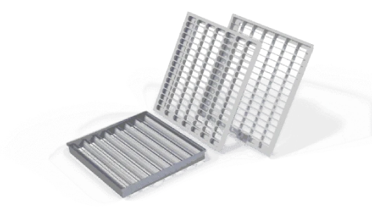 - Air grill tiles made of mild steel with 500kg point load capacity tested with third party certification. Available from 45% open surface area to 82% open surface area. Air grill tiles comes with gear type opposed blade volume control dampers for better control on air flow and under floor pressure.